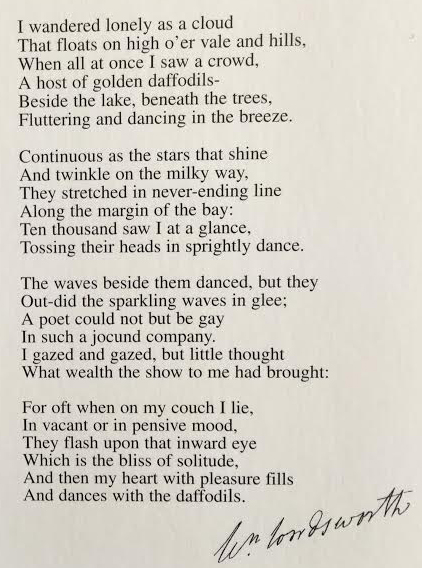 ‘Wordsworths the daffodils-1’Published March 24, 2017 at 422 × 568 in The Daffodils Daffodils. The poem on a post card from Wordsworth’ Dove cottage in the Lake District ‹ Return to post Leave a comment Cancel reply Δ