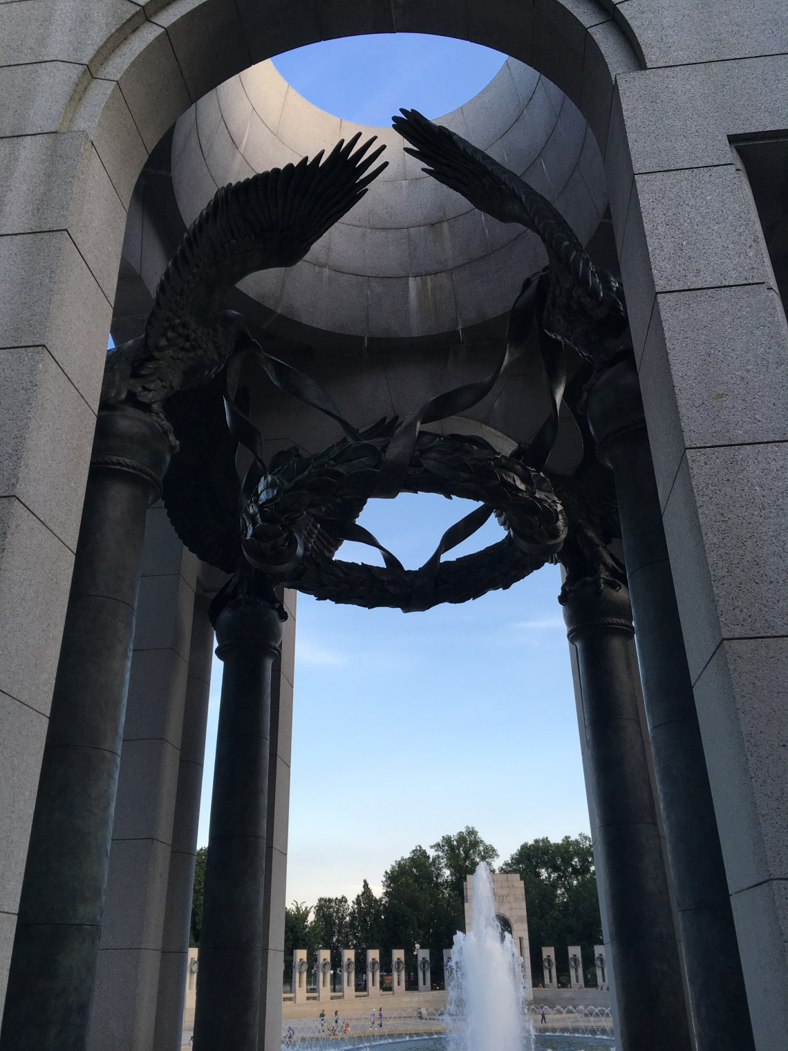 ‘One of two WWII Memorial pavilions with bronze wreaths and eagles’