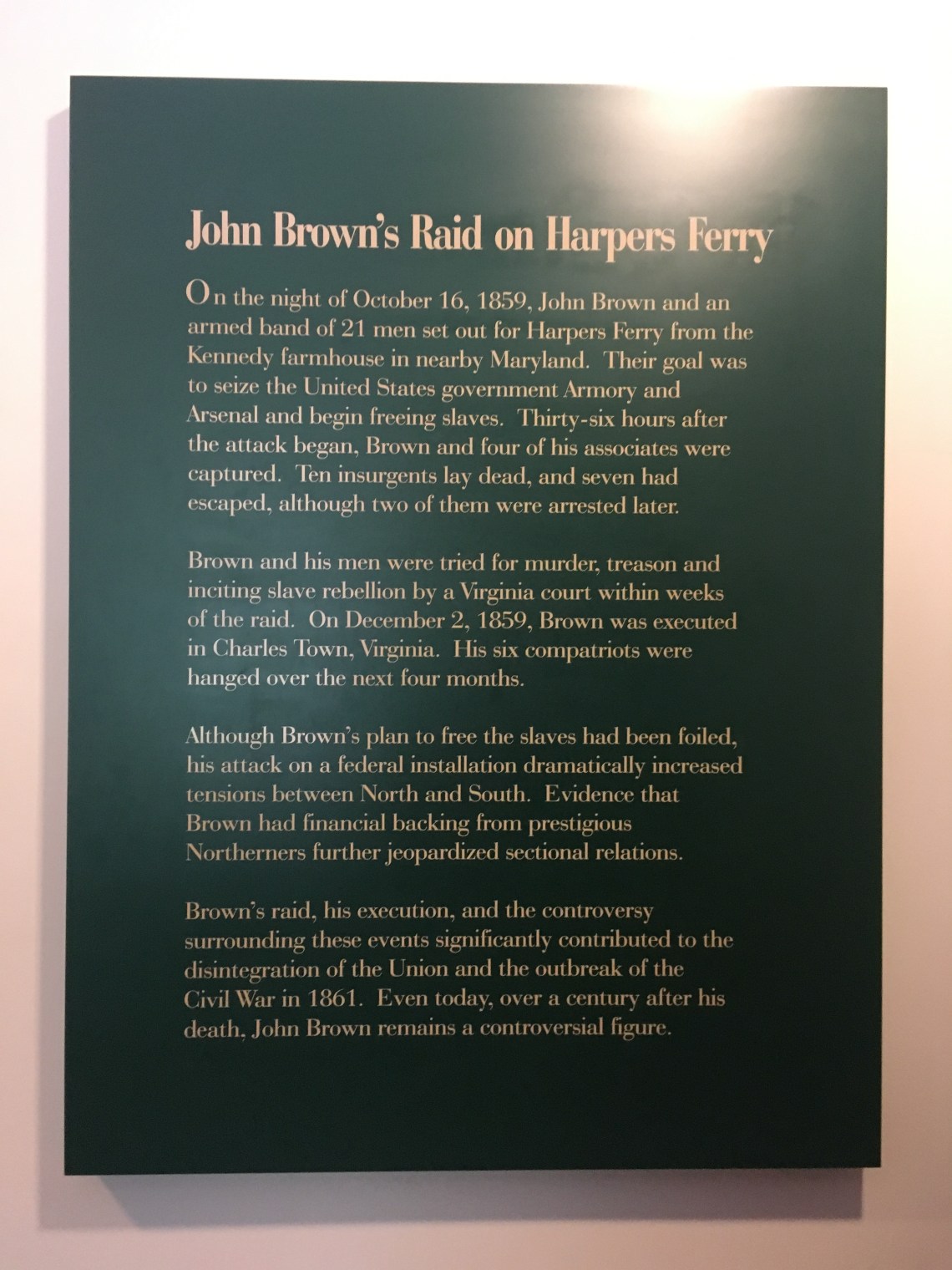 ‘John Brown’s Raid on Harpers Ferry’Published March 8, 2019 at 3024 × 4032 in Harpers Ferry, a Historical Site John Brown’s Raid on Harpers Ferry, from a museum at Harpers Ferry ‹ Return to post Leave a comment Cancel reply Δ