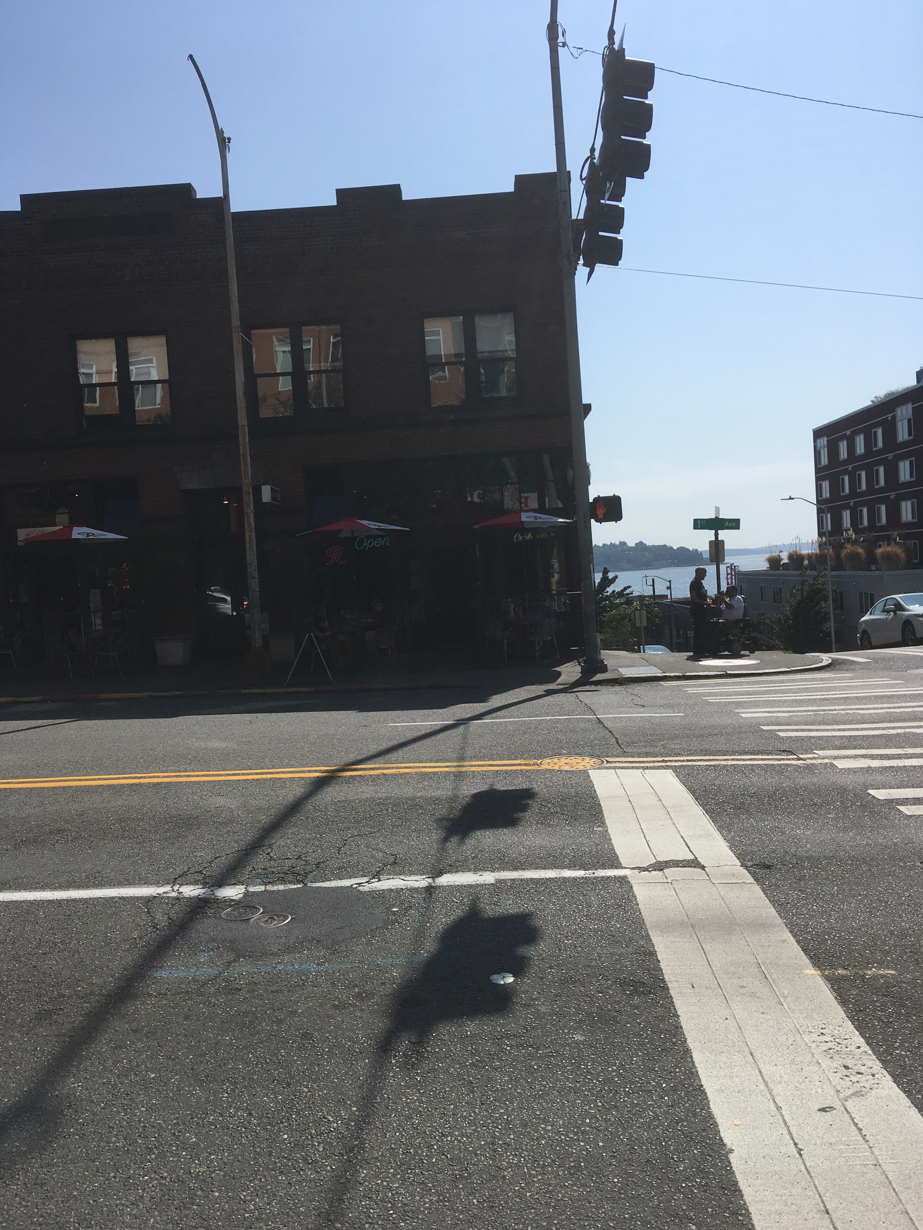 Our Ace Hostel at First Avenue and Wall Street. The harbour is down below the steep street.
