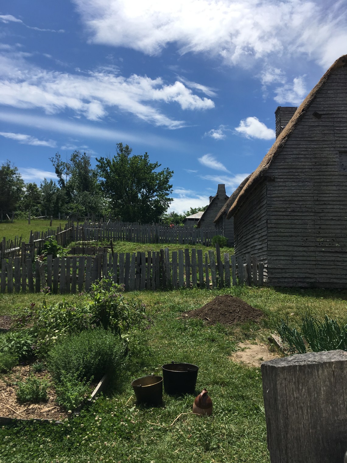 ‘View from a garden at the Plimoth Plantation Museum. 17th-Century English Village.’