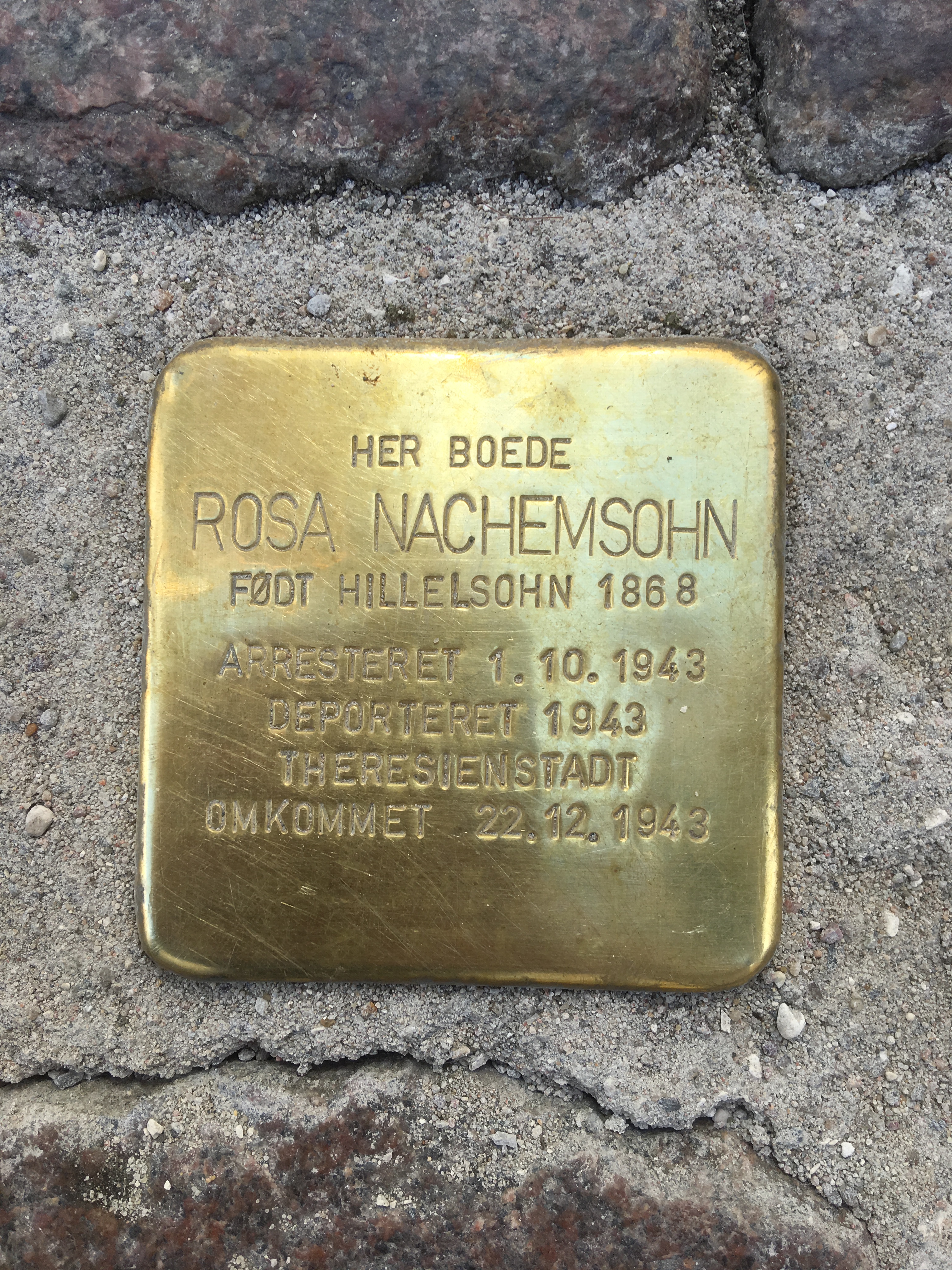 ‘Here lived Rosa Nachemsohn born 1868 died December 1943 in Theresienstadt’Published April 12, 2020 at 3024 × 4032 in Hidden WWII Memorials Here lived Rosa Nachemsohn born 1868 died December 1943 in Theresienstadt ‹ Return to post Leave a comment Cancel reply Δ