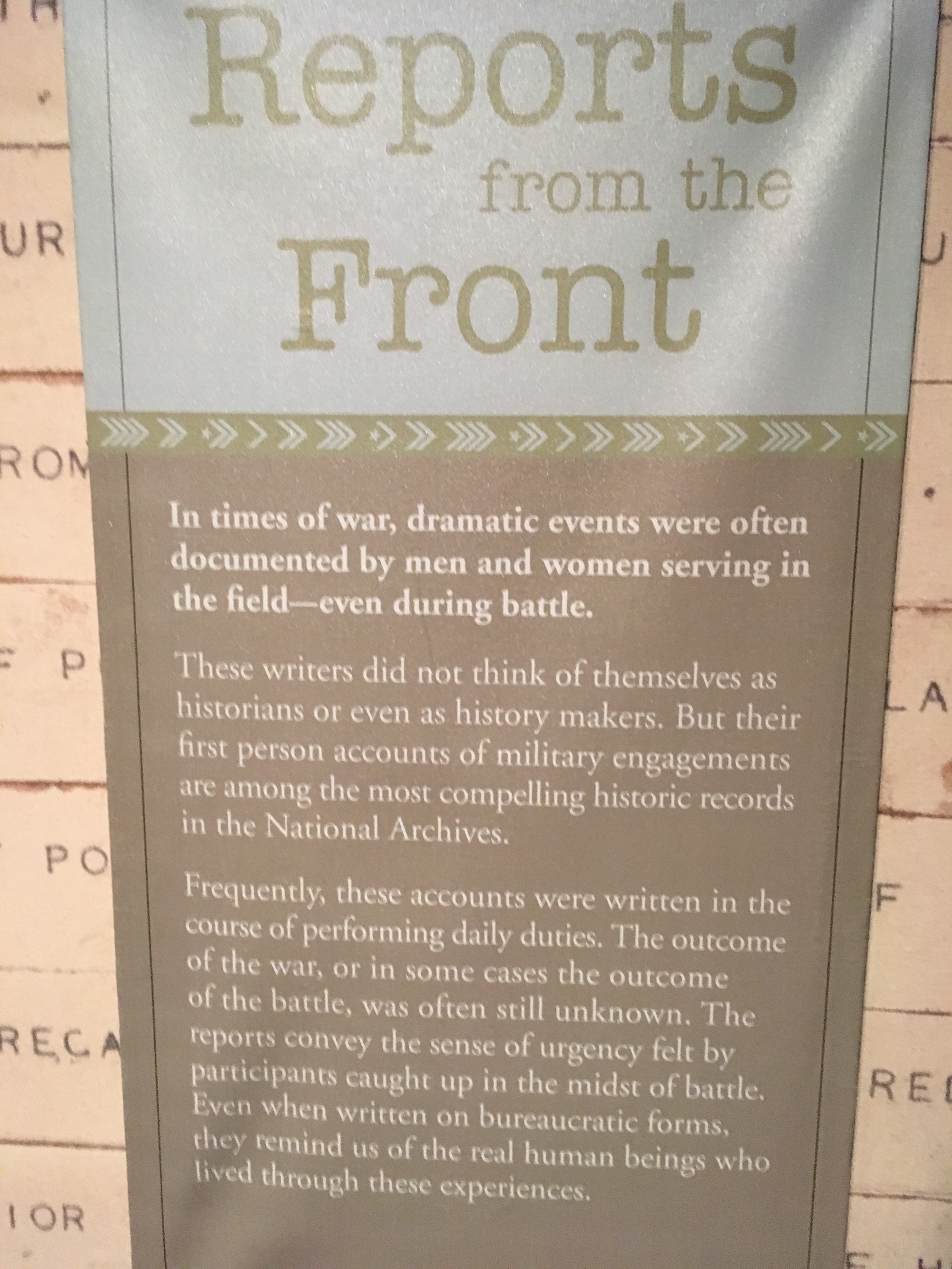 Reports from the Front. Written accounts by people who didn’t know the outcome of the war they were engaged in