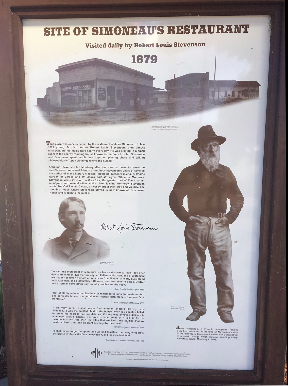 A poster close to the place he stayed for four months in the autumn of 1879 tells us that Stevenson became close friends with the French immigrant and restaurant owner Jules Simoneau. R. L. Stevenson had suffered since his childhood of chronic illnesses, so he appreciated that