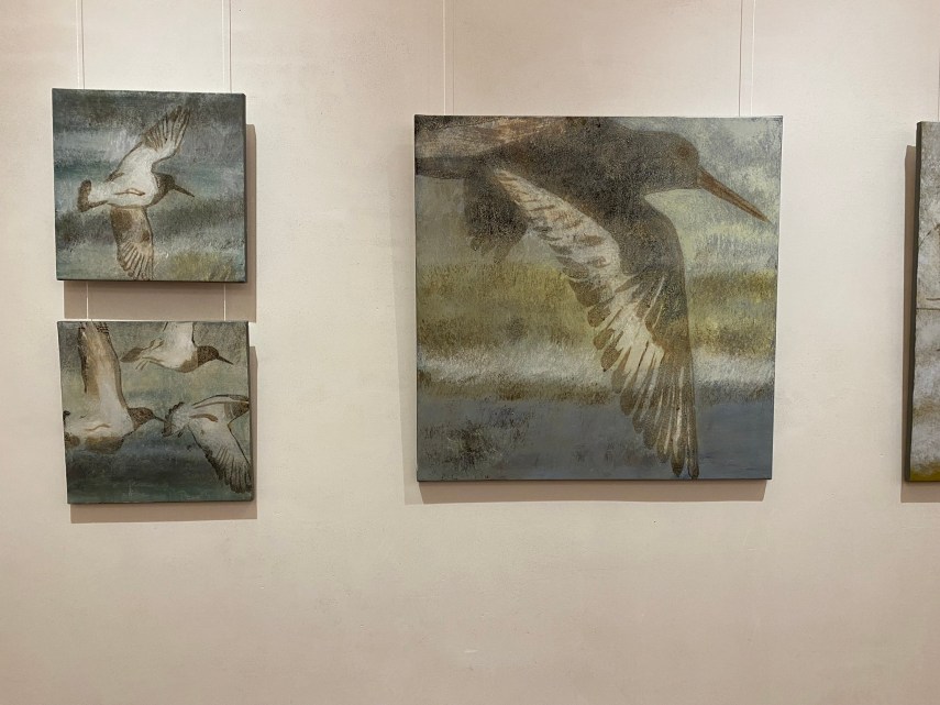 What a delightful exhibition. I will comment on only Simon Bangs painting of the nine storks. The painting of the birds are great but I really liked the way he painted the scenery in red. Very spectacular.