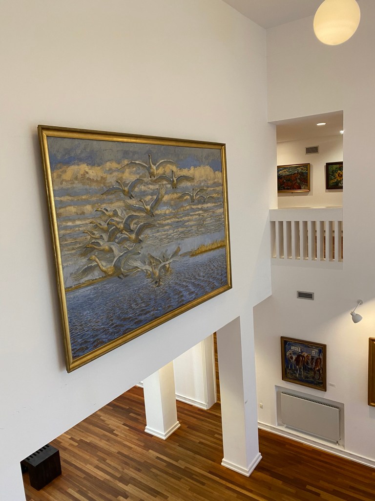 Recently, my husband and I drove two hours to visit this lovely place with a museum and the painter’s home and garden. We have an artist friend, Simon Bang from Copenhagen, who had a massive painting at a special exhibition on birds. We wanted to see his image among the other selected items.
