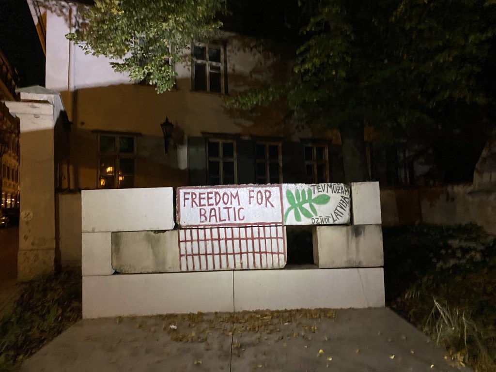 While on our way to this Latvian restaurant, we passed by the historical place where, in January 1991, people from Riga defended their independence from many years of Soviet occupation on barricades very close to the hotel.